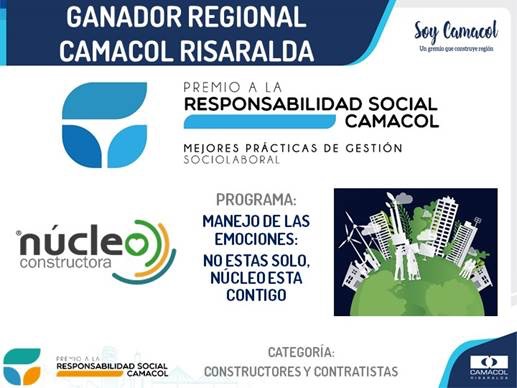 Abril 2022La categoría de Gestión Sociolaboral exalta las prácticas desarrolladas al interior de las organizaciones que buscan mejorar la calidad de vida de las personas que la integran y/o sus familias (bienestar laboral, educación, salud, recreación, etc.). Núcleo gana este premio, como empresa que promueve el fortalecimiento del capital humano, la promoción y respeto de los derechos humanos y el mejoramiento de las condiciones laborales de los trabajadores, buscando elevar y dignificar su nivel de vida, así como el compromiso más allá de la obligación legal, en materia de seguridad en el trabajo.